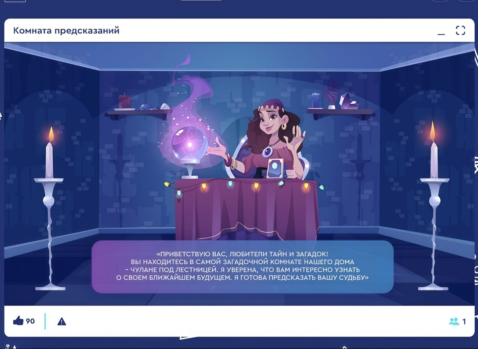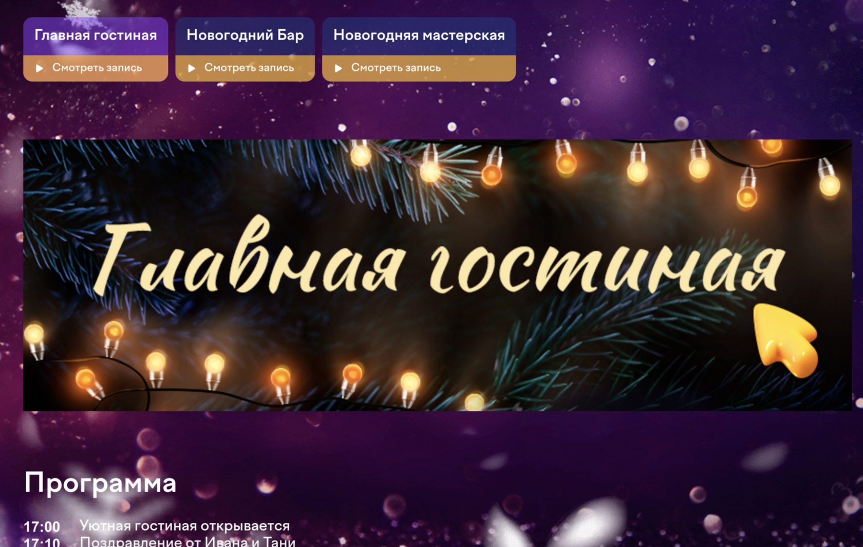 Комната Предсказаний: Всех интересует прогноз на будущее? Гороскоп, карты Таро, печенька с предсказанием… Узнайте, повысят ли вам зарплату, выдадут ли безлимитный кофе или придется выгуливать шефа по пятницам. Мастерская Деда Мороза: Чувствуете в себе искру креатива? Здесь можно создать цифровую новогоднюю открытку, смастерить GIF-поздравление или даже написать письмо Деду Морозу… с намеком на очень конкретный подарок! Бар "Оливье"! Официально открываем сезон миксологии! Делимся рецептами фирменных новогодних коктейлей, устраиваем онлайн-дегустацию, выбираем лучший "Оливье-микс" вечера. Фотосалон "Селфи со Снеговиком"! Где еще можно сделать эпичное новогоднее селфи? Выбирайте забавные фильтры, примеряйте смешные шапки и делитесь праздничным настроением в соцсетях!