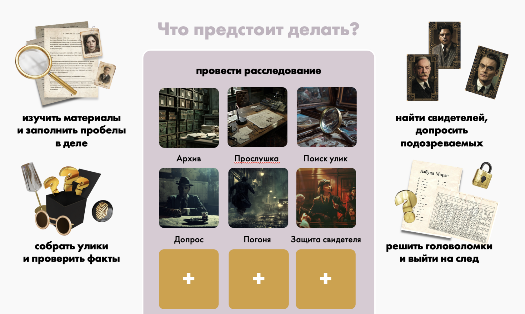 Раскройте дерзкое преступление прямо на новогоднем корпоративе с захватывающим Рождественский вечер в Лувре омрачён кражей века – пропали ценнейшие картины! Под руководством опытного ведущего, ваша команда превратится в блестящих сыщиков в духе Агаты Кристи. Исследуйте виртуальные улики, допрашивайте свидетелей, устраивайте погони и вычисляйте подозреваемых, чтобы восстановить справедливость!